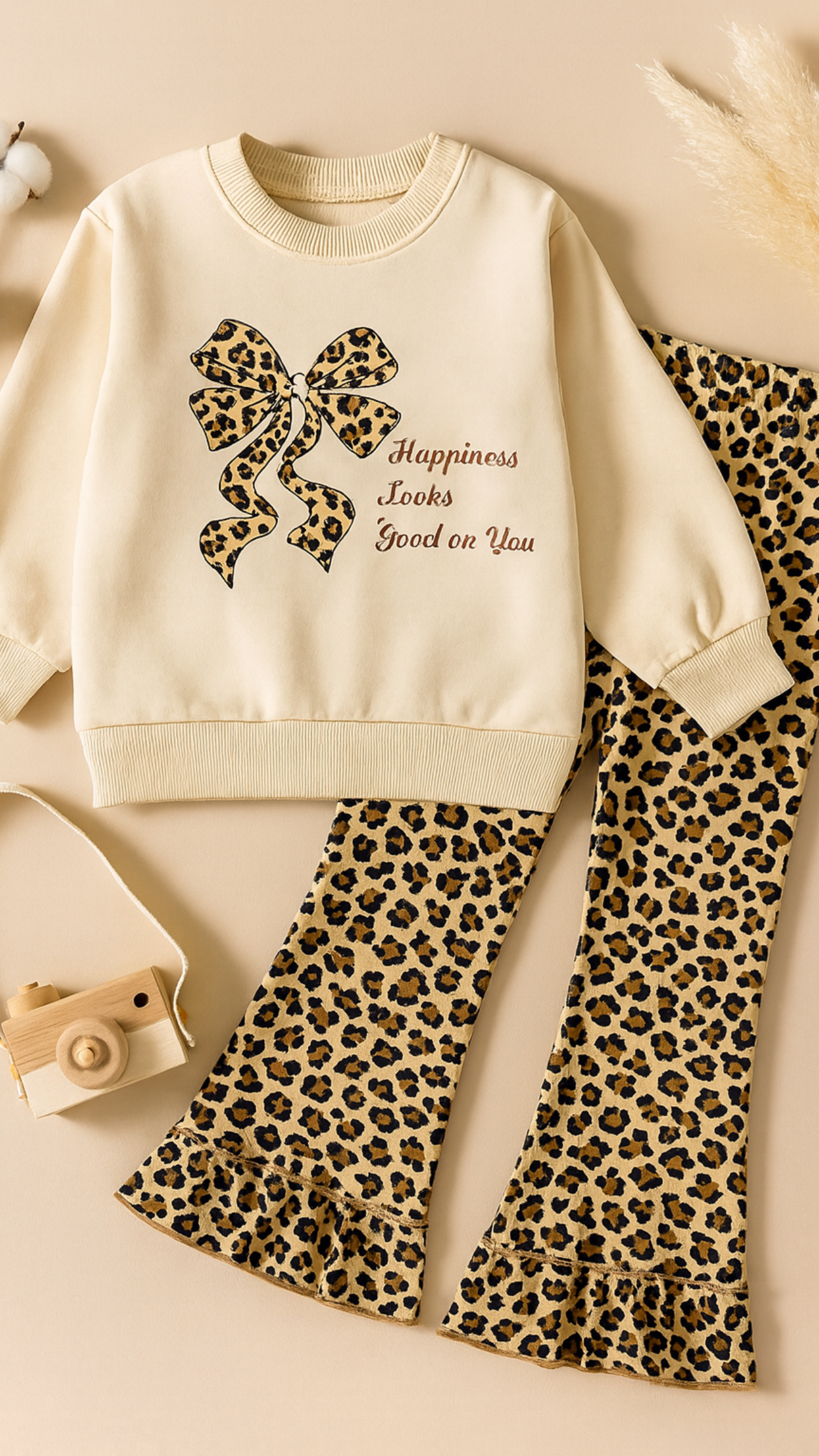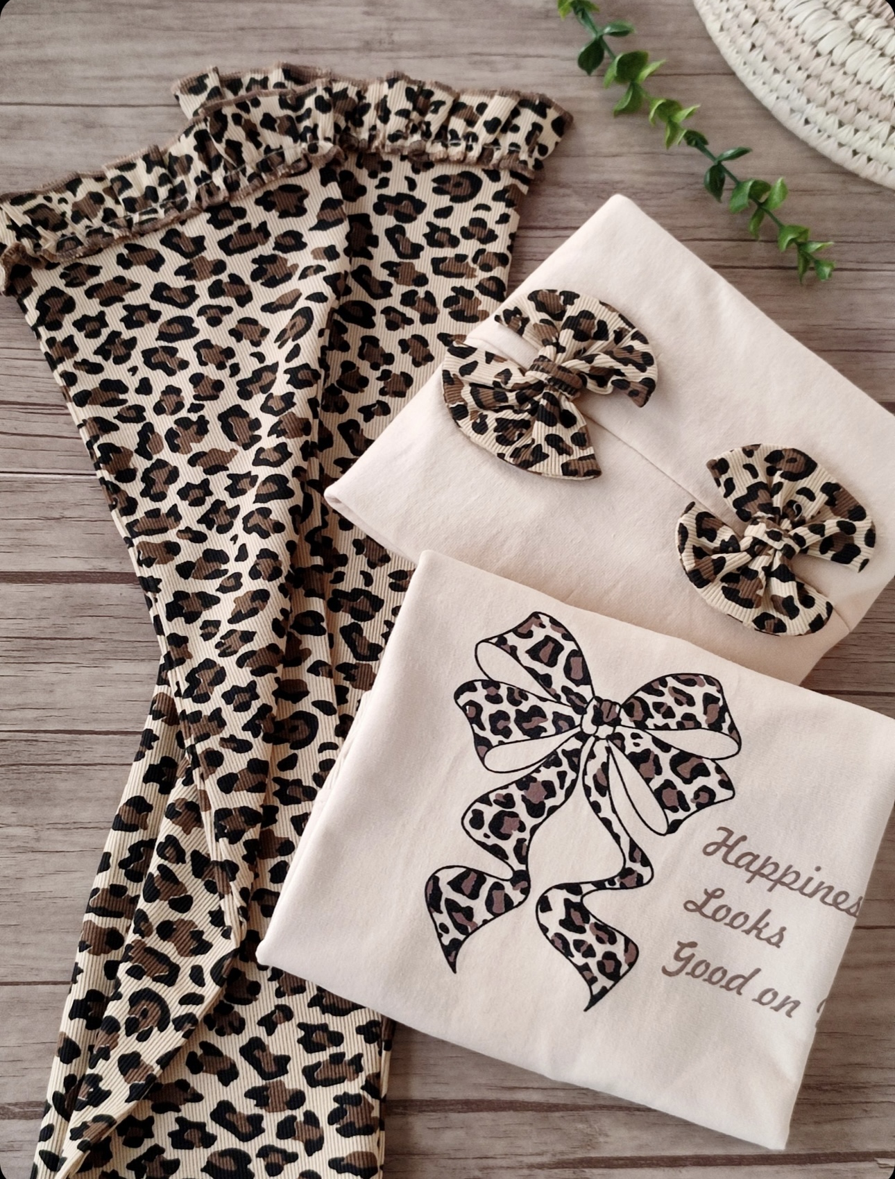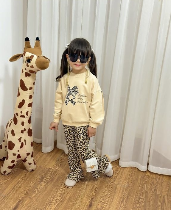 جنس بلوز دورس پنبه دونخ و جنس شلوار دمپا کبریتی پلنگی / مناسب حدود ۳ تا ۹ سال